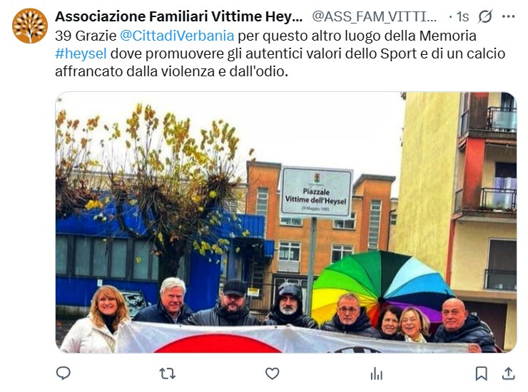 Anniversario della strage dell’ Heysel la Città di